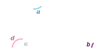 The diagram on the left shows another example of the same thing, except that in this case, I have pushed the angle subtended by DE at circumference so far over to the right that the lines cross over each other. It makes no difference: The angle subtended by DE at the centre (marked a here) is still twice as large as the angle subtended at the circumference (b here).